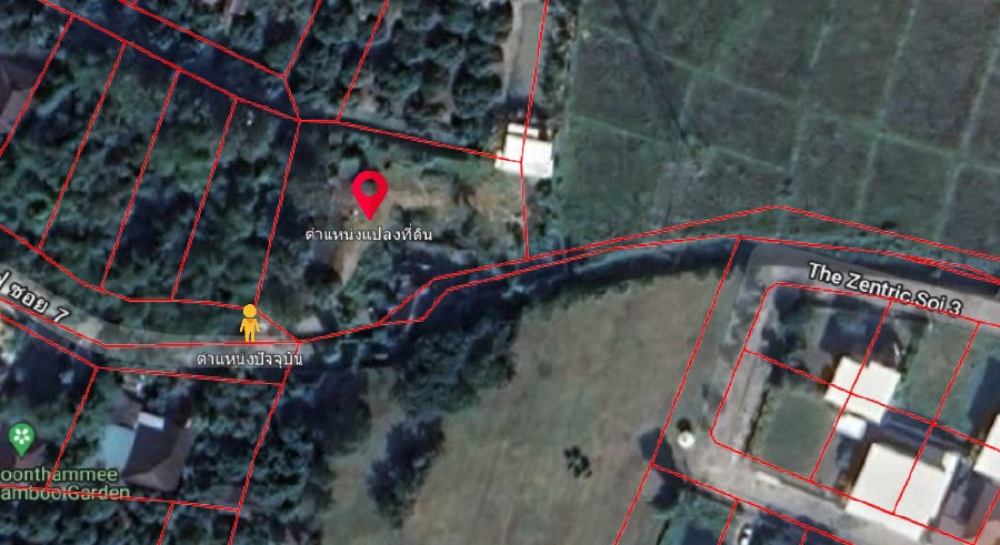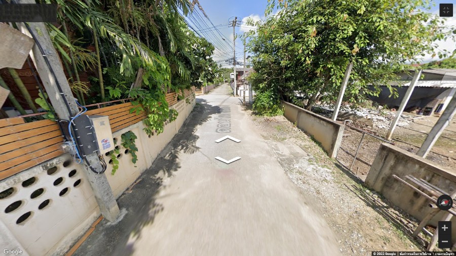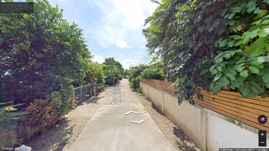 - ถนนคอนกรีต วางท่อระบายน้ำไว้แล้ว - มีกำแพงล้อมรอบ